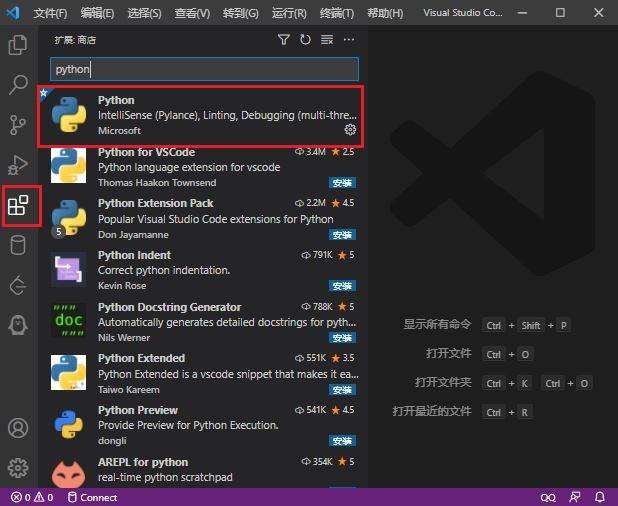 Python扩展将自动安装Pylance和Jupyter扩展,以便在使用Python文件和Jupyter笔记本时获得最佳体验。